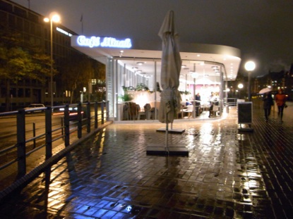 Rechts: Blick vom Café Minah auf den Hafenrand.