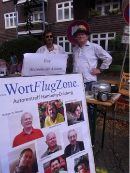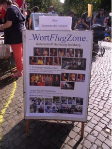 „Man kann es ja mal versuchen“, war der Tenor bei der Beratung über die Ausrichtung unseres Standes. Die Besucher sollten aufgefordert werden, zum Kopfhörer zu greifen und unseren Autoren einfach mal zu lauschen. Beteiligung der Besucher: Licht und Schatten.