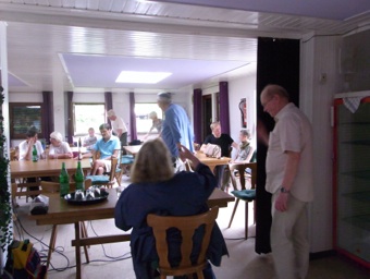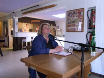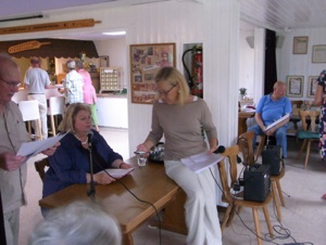 Oben: Andrea Maria von Wrangel liest von Wetterkapriolen.