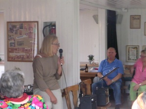 Oben links: Bezirkschefin der Linken und Kleingärtnerin Angelika Traversin eröffnet den Abend.